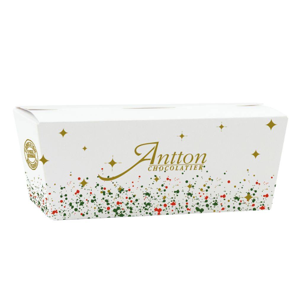 Disponible uniquement sur la période des fêtes de fin d'année, le ballotin 400g sélection Noire de la Maison Antton vous offre une palette gourmande de chocolats fins exclusivement au chocolat Noir. Des ganaches fondantes: Ganache à la framboise "Martxuka Gorria" Noir, ganache au café "Chistera" Noir, ganache à la fève tonka Noir, ganache à la cannelle "Kanela" Noir, ganache à la purée de poire et à l’Armagnac "Udarea" Noir; Des pralinés gourmands: Gianduja noisette "Pottoka" Noir, praliné croquant "Bihotz Ttipia" Noir; pâtes d'amandes moelleuse au rhum "Eguzki" et au cassis "Gorria" Noir.