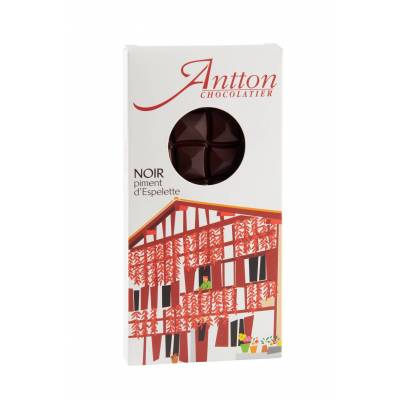 Le piment d’Espelette est l’épice qui reflète tout le caractère et la subtilité du Pays Basque. Pour faire honneur à cette épice d’exception, Antton Chocolatier crée cette tablette dans un décor illustrant les maisons à Espelette généreusement garnies de cordes de piment.